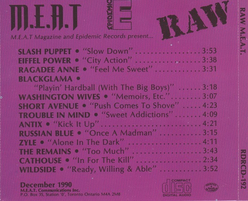 It’s difficult to be objective, even though so many years have passed since Raw M.E.A.T 1.   Many (if not most) of these bands had potential.  Toronto in the early 90s was ready to explode as “the next Seattle”, but there was no “next Seattle”.  12 of these 13 songs are really fondly remembered, with one just needing a little more originality.