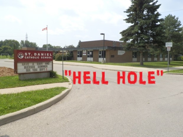 My sister used to call that school the “Hell Hole”.  She would sing Spinal Tap’s “Hell Hole” when we drove by.  This is a little kid in grade 4 calling her school that name.