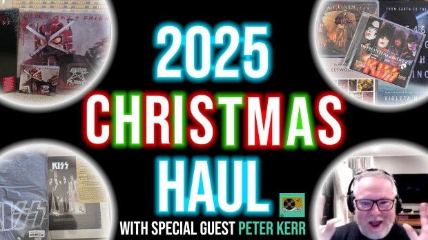 With bellies and ears full, please join Harrison and I with special guest Peter Kerr, on Grab A Stack of Rock live!Β Tonight is the night that we reveal our Christmas musical hauls (and other recent scores).Β The pictures in the thumbnail images are just spoiler-proof teasers and placeholders (though time permitted we will look at those recent arrivals too).Β Β We’ll just have to see what the other guys have in store, because I write these posts in advance!Β I can tell you that on my side, I have four new discs to discuss, a cherished musical heirloom, a new music T-shirt and more!