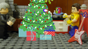 I sat down at the table of the Writer’s Room, with a mild case of Grinchiness. I had been asking these guys for their parts for weeks, and gotten nowhere! They were all seated around the table, waiting for me to speak. There was Harrison to my immediate right, and he was twitching with eagerness to start work on his Lego artwork. Next to him was John, drinking a bottle of Gene Simmons’ “Moneybag” soda, a premium offering from the Kiss demon. To my left were Aaron, and Michael, the 80sMetalMan. They seemed to be confused as to the urgency of this meeting.