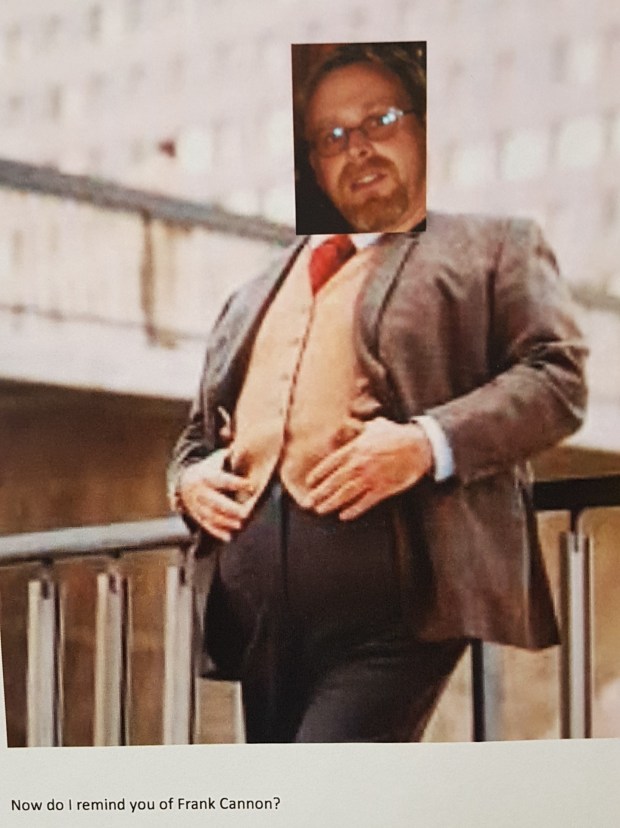 “You kinda remind me of Frank Cannon,” said the guy at work.
