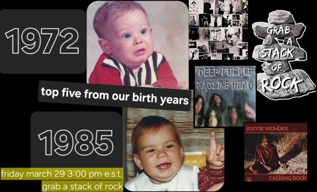 The Jexter Bunny brought an early Easter surprise this year. Unbeknownst to me, Jex Russell and Uncle Meat had conspired to surprise me with Meat’s first live appearance on Grab A Stack of Rock since 2022! The topic: Top Five Albums from our birth years! The presence of Uncle Meat enabled us to do albums from three consecutive decades.