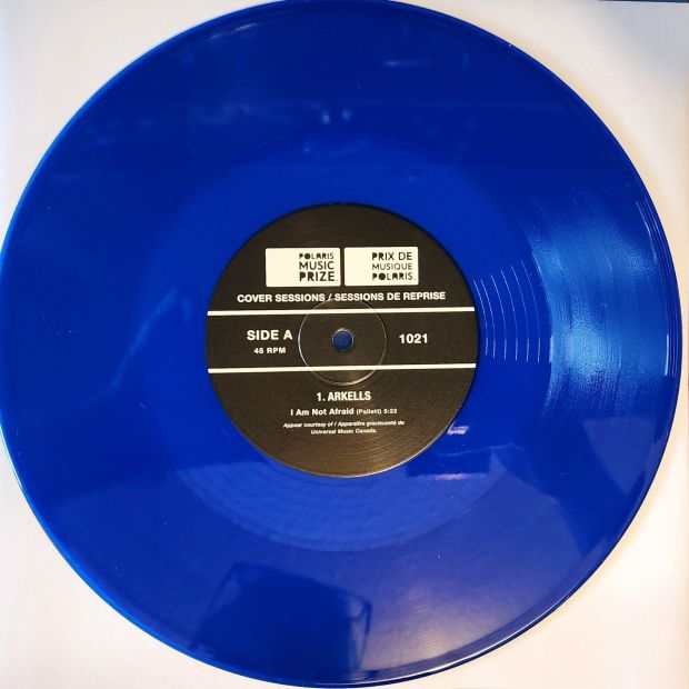 Collecting Arkells odds & ends on physical formats is an expensive prospect. This cool 10″ EP features the Hamilton band, along with Nova Scotia’s Joel Plaskett and Toronto’s Zaki Ibrahim. The three artists cover Canadian songs on this EP, from artists both famed and obscure. It is a beautiful transparent blue EP, with a basic cover design. The names of the featured artists are on the front, with the names of the artsists covered on the back. The tracklist and credits are inside, on a coloured insert. More on that in a minute.