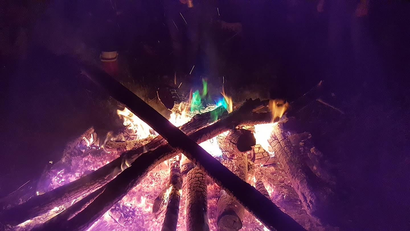 Tee Bone sat by the campfire in complete relaxation. Such utter peace. He took a deep breath, held it a moment, and let it go. The fire crackled before him, alive and sparking with the sound of dry wood and combustion. He watched the flames dance before him, forming red, orange and yellow shapes just as quickly as they disappeared. The sound of the popping wood was like music to his weary soul.