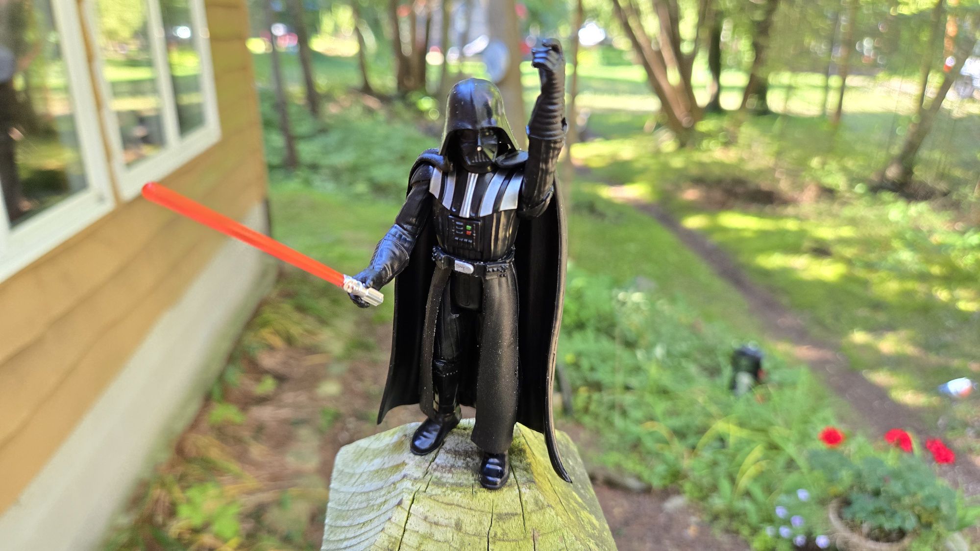 Sometimes at the cottage when it’s cold, you have to force yourself to be outside, so I pulled out some old Transformers toys (some vintage, some reissues) and did some fun photos on the front porch. I even experimented with filming one of the big ones from the air with my drone.