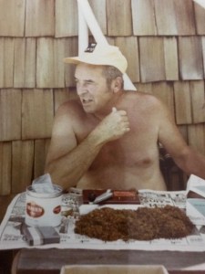 There’s a funny old picture of my grandpa at poolside. I remember that he liked to roll his own cigarettes. I remember the tobacco tins and my mom having to explain to me what he was doing. Well apparently he really loved to do it. In this photo, he obviously packed up all his tobacco and rolling gear, and just sat there at poolside rolling cigarettes! He looks so happy with a huge pile of tobacco in front of him. It strikes me as hilarious that he brought all that stuff with him to spend a day at the pool.