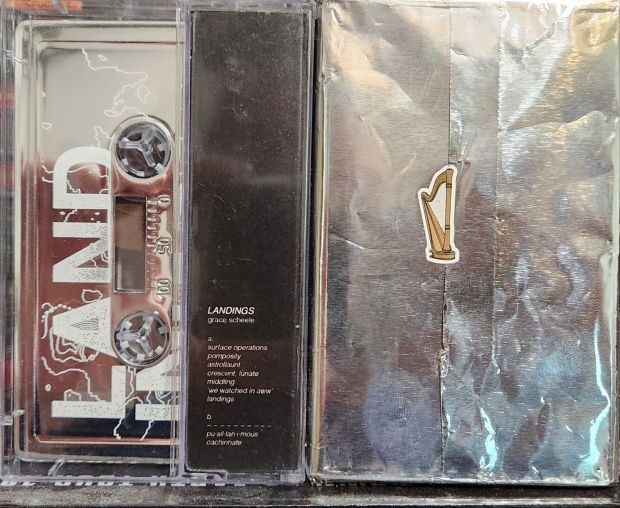 A blast (-off) was had yesterday, taking a look at Landings, the debut EP by electroacoustic harpist Grace Scheele!  It’s a concept EP about the Apollo 11 mission.  If you like science fiction, space, the moon, chilling, or not chilling, this cassette is for you!  Chromed plastic, sleek packaging, bonus tracks, what more could you ask?  And a small quantity is still available if you’d like your own copy!  You can get it at Bandcamp, and I’m getting a second copy while I still can.  Why?