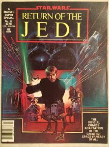 The first sign that we had a cool year ahead of us was when my mom came home with a new box of cereal one day. It was probably Cheerios; regular or Honey-Nut. On the front: “STAR WARS BOOKLET INSIDE!” This must be in advance of the new Star Wars movie, Revenge of the…what? The title had been changed to Return of the Jedi. Less edgy to be sure. We learned that George Lucas changed it because Jedi do not take revenge.*