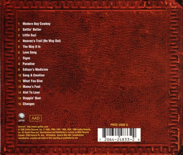 Key tracks such as “Modern Day Cowboy”, “Gettin’ Better”, “Little Suzi”, “Love Songs”, “Signs”, “Edison’s Medicine”, “The Way It Is”, and “What You Give”.