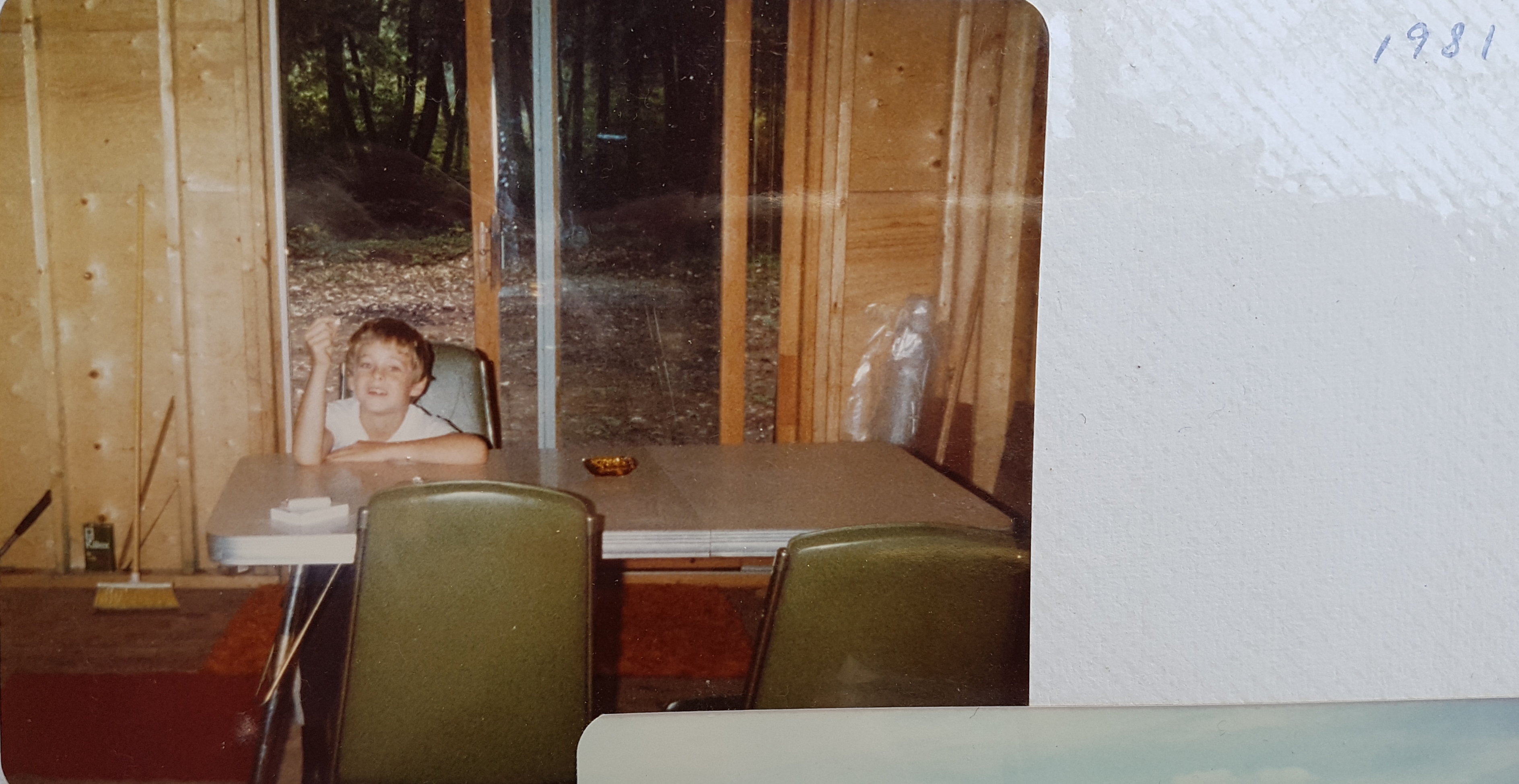 By 1981 we had a space we could live in. The interior was not finished, and we used an old folding table in the kitchen. The back yard was nothing but dirt and stones. My mom’s ashtray and cigarettes sat on the kitchen table. It took years to finish the inside, room by room. The wall slats went up and the ceiling was eventually finished too. Soon, front and back decks went on.