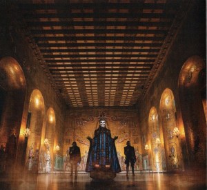 The box is a cathedral-like window, which looks great as a backdrop for your figure. Papa can be displayed in his cloaks and mitre, or more simply in a shiny blue suit. He has options for interchangeable heads, and a selection of pop-off hands for either guise. The plain Papa has hands in plain black gloves while the more decorative Papa has hands with skeleton-like designs on them. He has two soft-goods pieces of clothing to dress him up: A vest-like undercloak, and a poseable wire-blacked cloak. Both are intricately decorated. Take care to keep both in excellent condition.