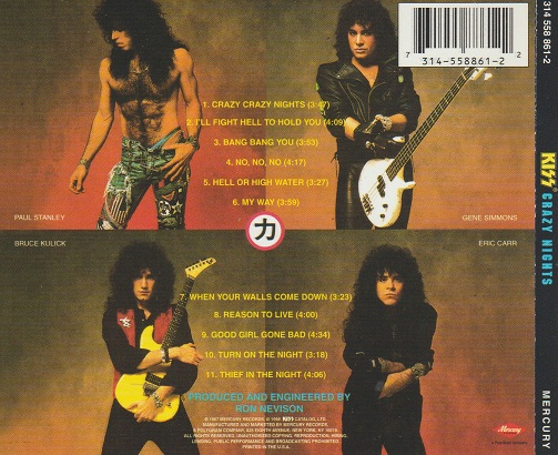 1. Gene’s voice. He was, at least for this album, leaving the growling and howling Demon voice behind. His singing on Crazy Nights is smooth all the way through. Immediately noticeable as different, but I kind of like it. Gene didn’t have many songs but a couple of them were pretty strong: “Good Girl Gone Bad” and “Hell or High Water”.