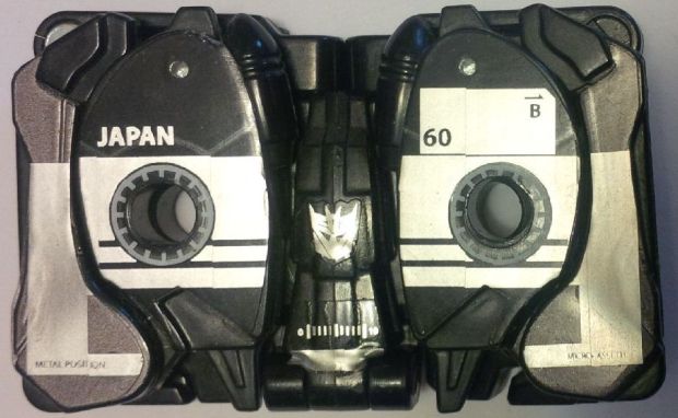 How are they music related? One of them transforms into a cassette, while the other one plays a wicked guitar solo on the electric axe, as you can see below! Also note Hound’s cool light-piped eyes. Nifty eh?